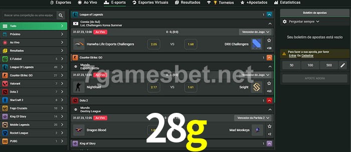 A aposta 28g oferece aos jogadores a experiência mais conveniente de apostas em eSports!